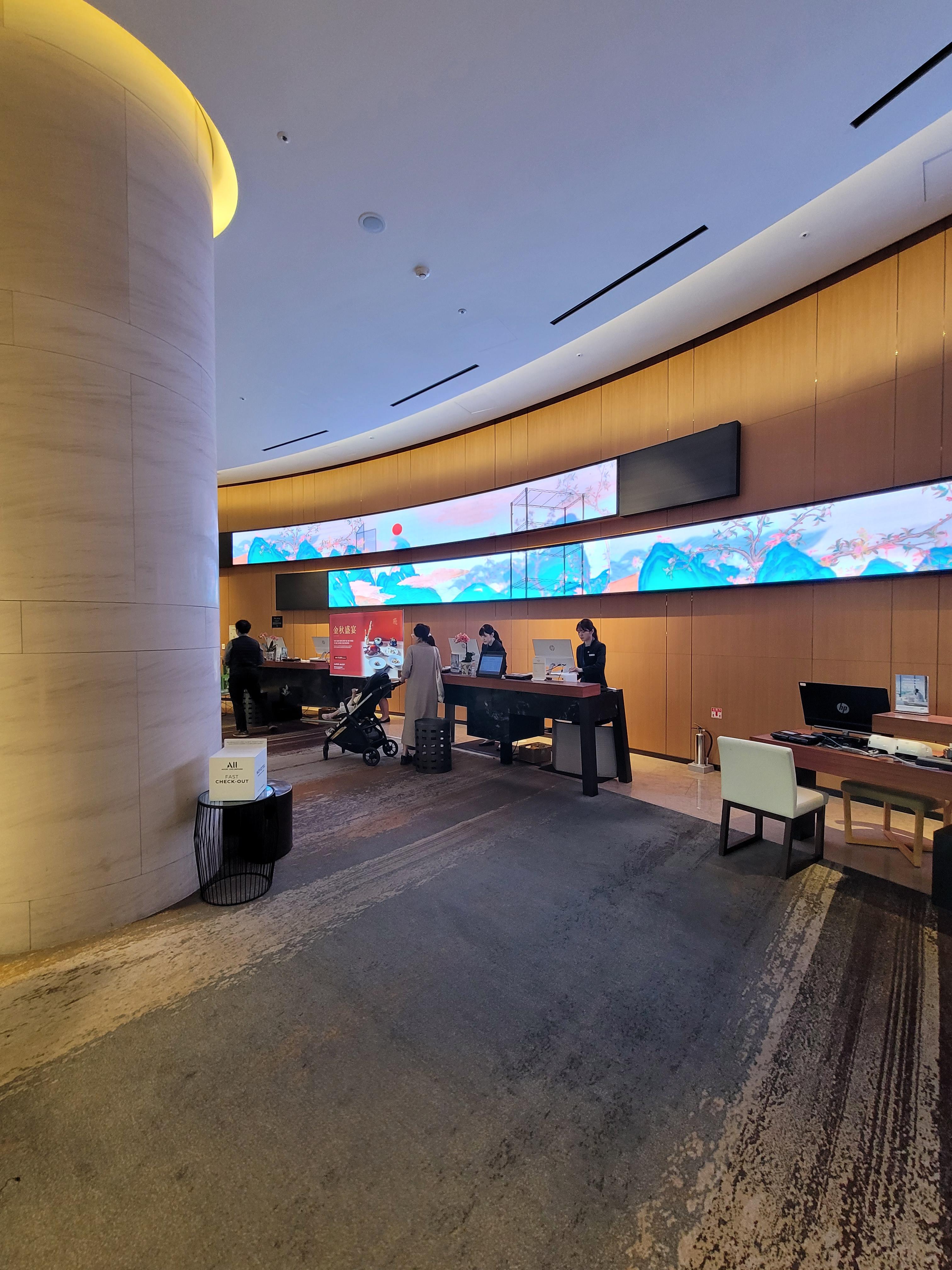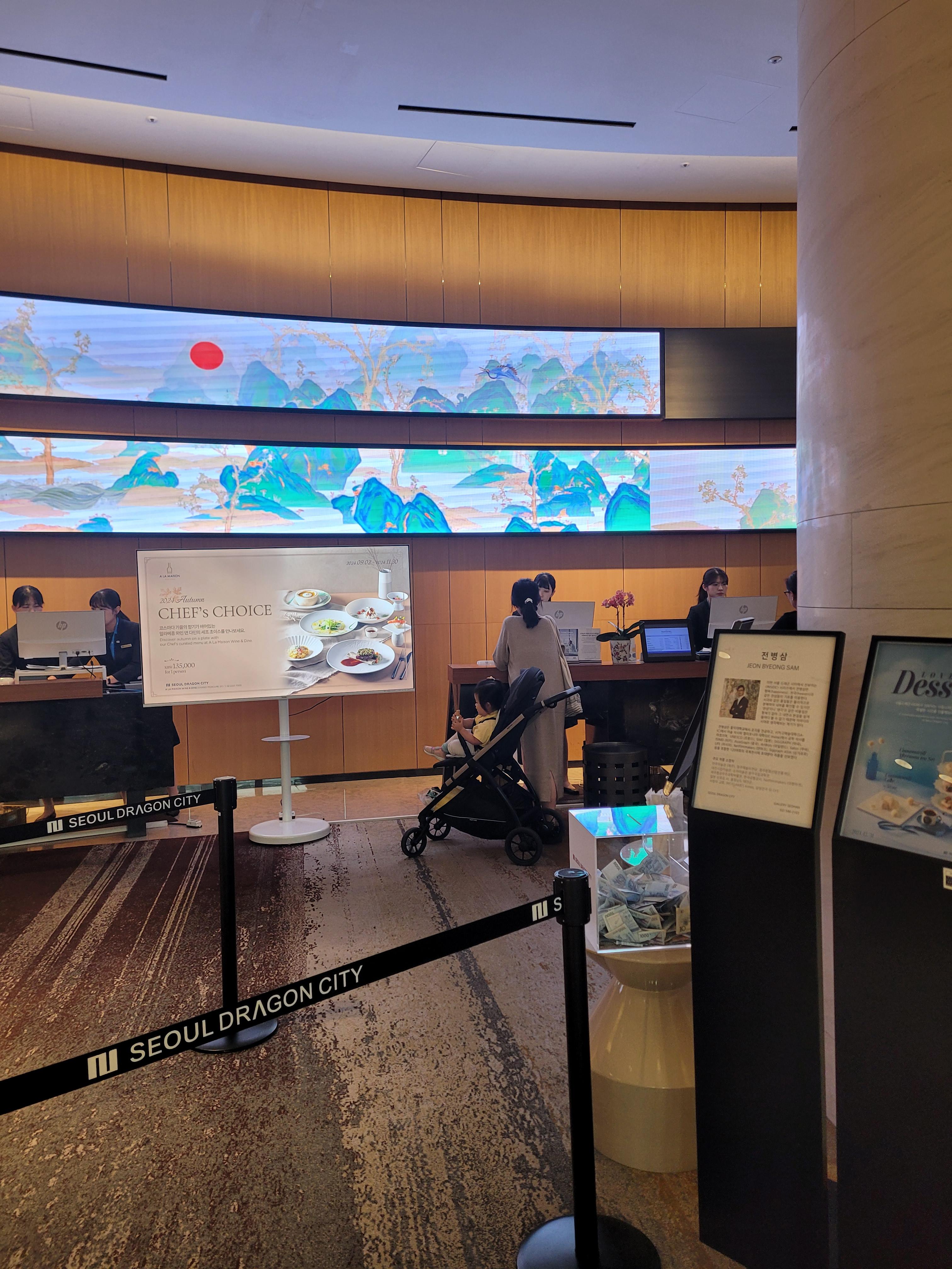 프런트 뒤의 LED 동양화 배경이 인상적이네요.