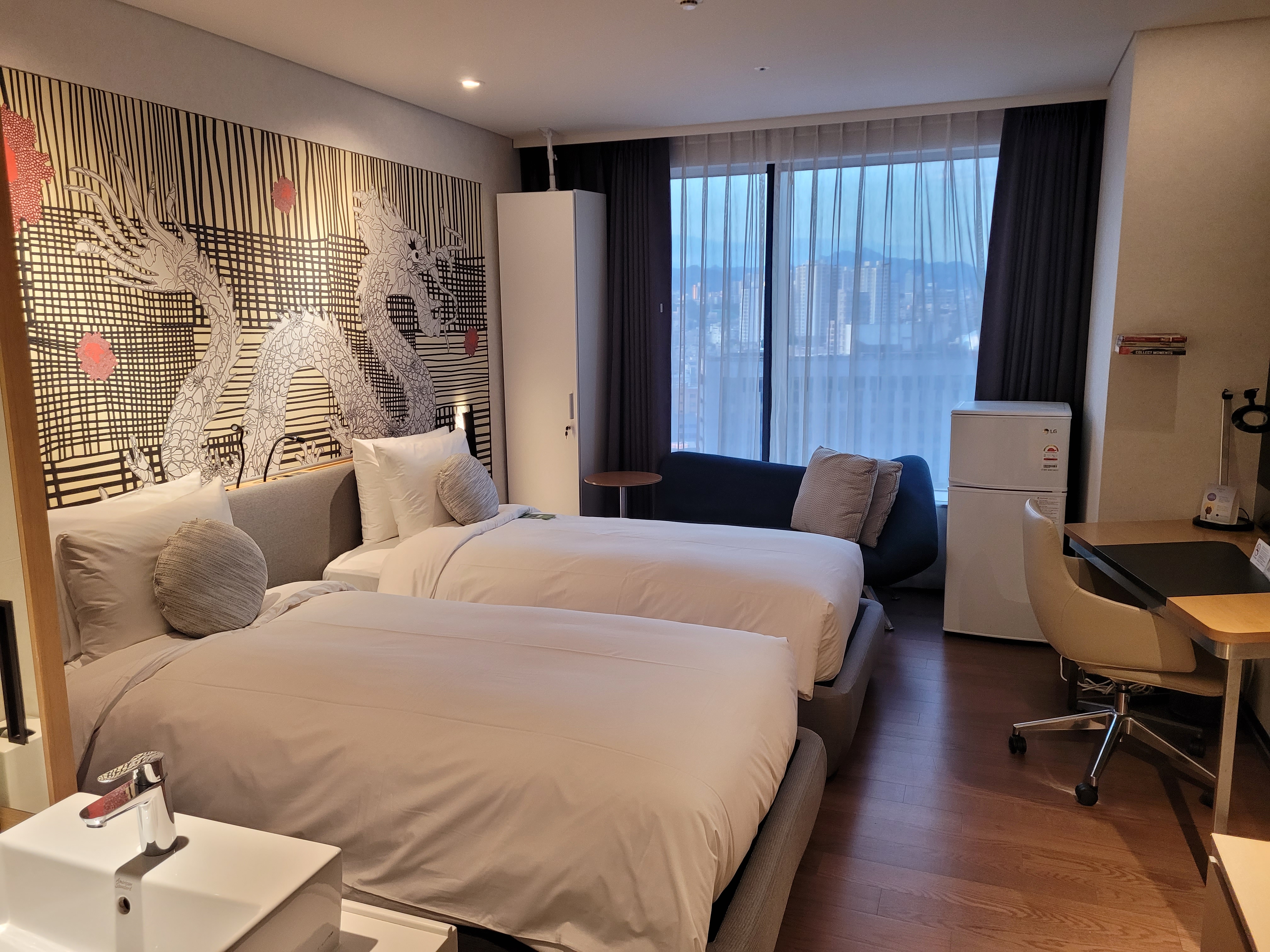침대 머리맡의 큼지막한 용 그림이 눈길을 사로잡네요ㅎㅎ