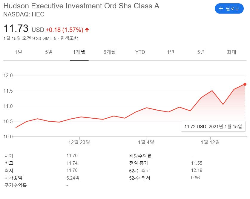 'Hudson Executive Investment Corp.(NASDAQ : HEC)입니다.
